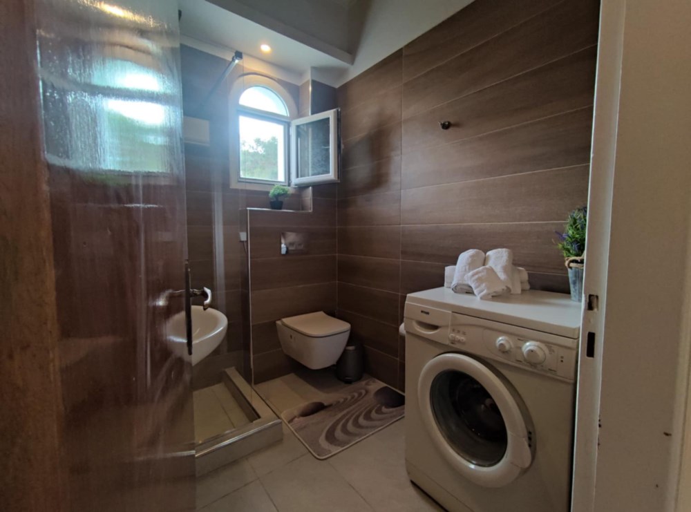 The ground floor includes a fully equipped kitchen, dining area, cozy living room, a bathroom with walk-in shower, and two twin bedrooms with beds that can be joined into doubles. Upstairs, you’ll find three more bedrooms—one with a double bed and two with joinable twin beds—as well as two thoughtfully designed bathrooms. Wake up to endless blue views, enjoy your breakfast by the sea, and spend your days as you truly deserve: surrounded by peace, beauty, and the sound of the Ionian waves.